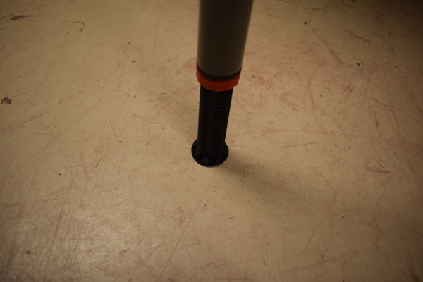 Vit träbord med mannuellt ställbara metallben. H:74 B:140 D:70