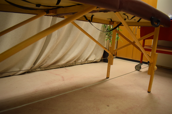 Ihopfällbar, bärbar massagebrits i konstläder. H:78 B:210 D:74