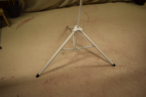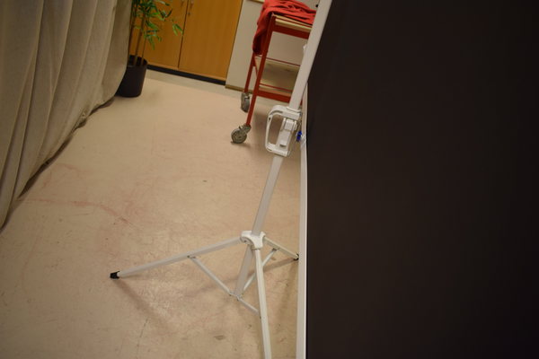 Projektorduk med tillhörande ställning i vit metall. H:210 B:210 D:50