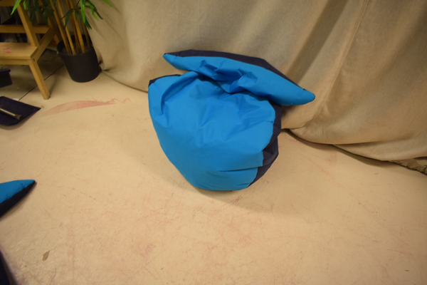 Två stycken sitt-puffar i form av fisk. Tygpåsar , märke "Sitting bull" D x 60 B x 92 H x 17