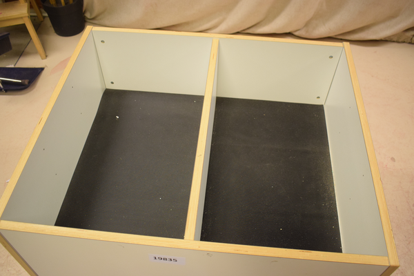 Vitt bokställ med två fack. D x 64 B x 74 H x 56