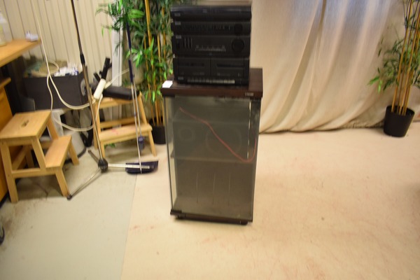 Stereo spelare med band / radio och Lp spelare dock har drivrem släppt så LP spelare funkar ej. Möbel och två högtalare ingår. D x 40 B x 49 H x 121