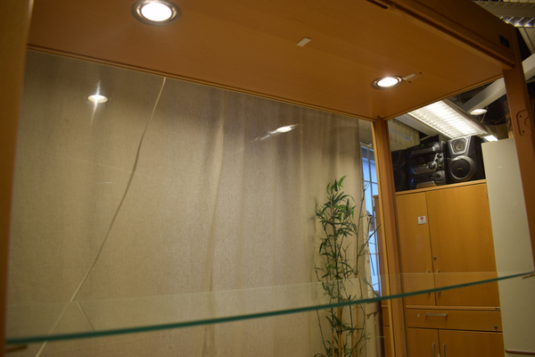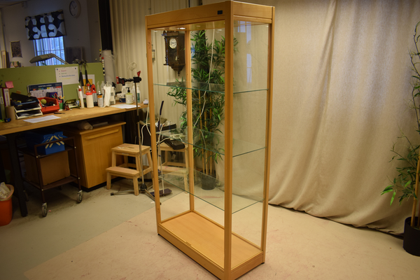 Glasskåp i glas och trä, med 4-hyllplan. D:41, B:91, H:180.