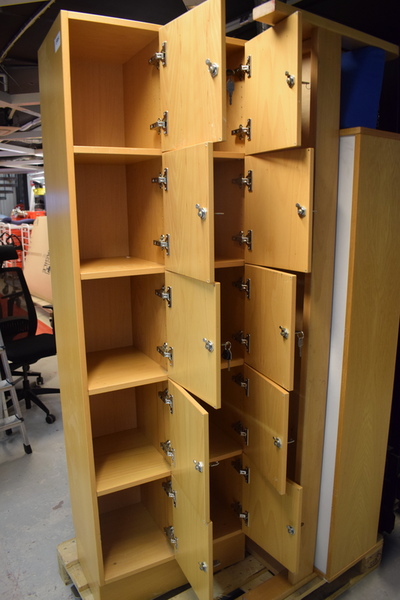 Träskåp med 10 låsbara skåp. H:194 B:60 D:39