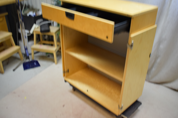 Skåp med 2 hyllplan bakom dörrarna och en låda. Nyckel saknas. H:98 B:80 D:40