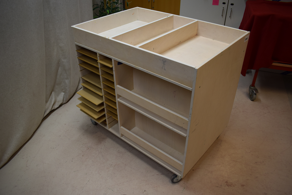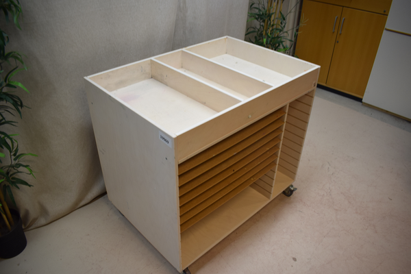 Rullhylla med fack för stora papper och fack för mindre papper. H:85 B:83 D:64