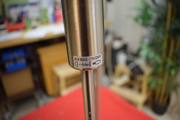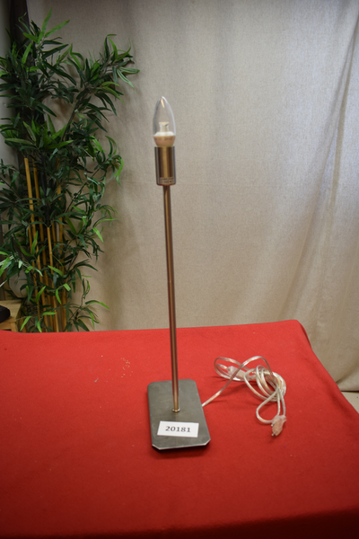 Bordslampa i metall med knapp på sladd. Saknar lampskärm. H:58 B:10 D:20