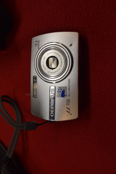 Olympus kamera med laddare.