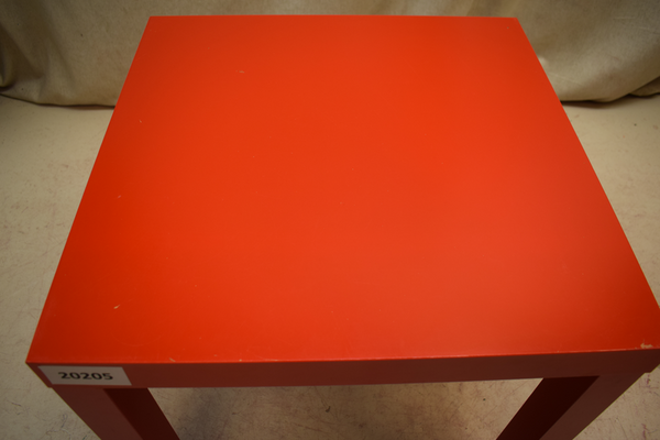 Rött litet lackbord från IKEA-lack. Finns lite skavmärken på sidorna. D:55, B:55, H:45.
