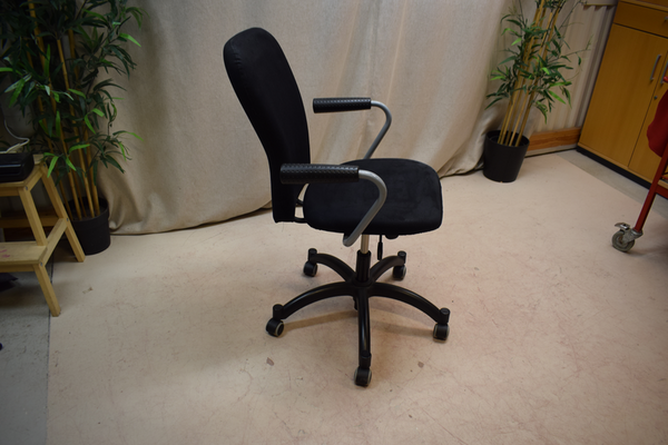 Svart kontorsstol. Höj- och sänkbart sam sits inställning. B:61 D:55